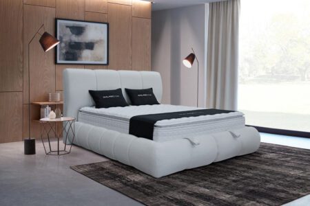 Krevet Storm Plus donosi spoj vrhunskog komfora i modernog dizajna. Tapacirano uzglavlje, izdržljiv sanduk od metalne konstrukcije i dobar madrac idealan je izbor za svakodnevni odmor i miran san. Sofisticiran stil lako se uklapa u svaki enterijer.